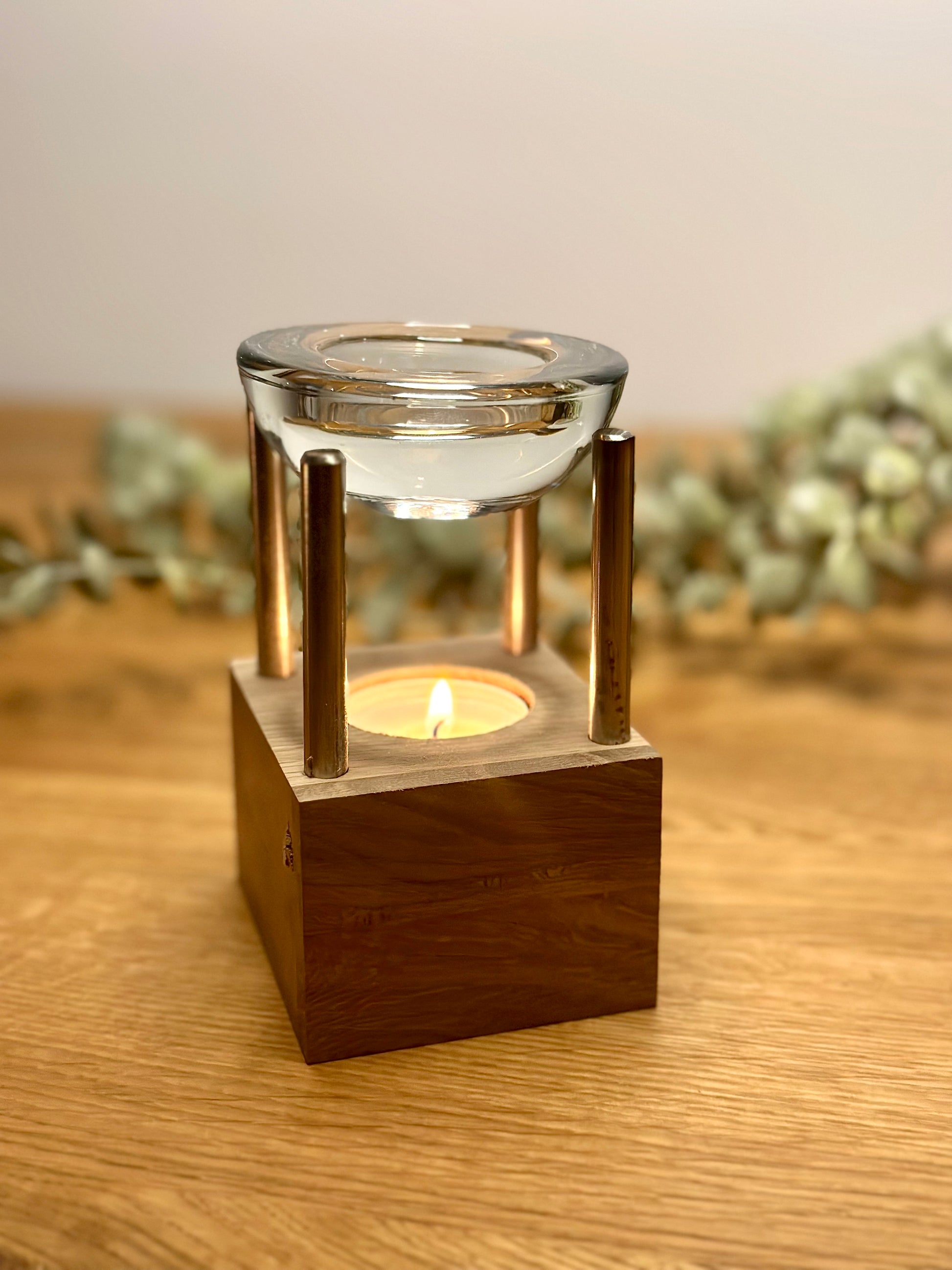 Duftkerze Holz & Edelstahl – Stilvoll & Gemütlich
