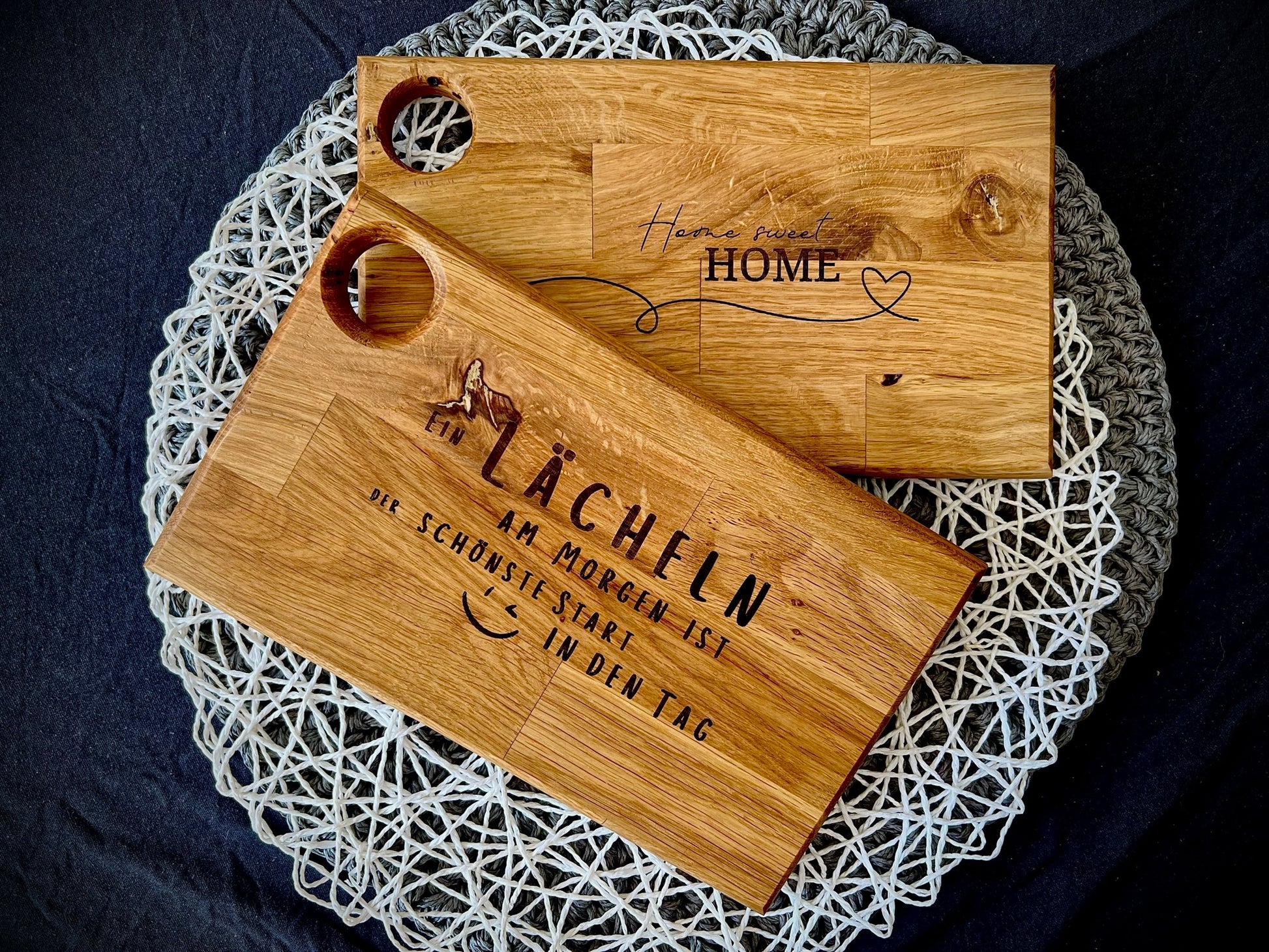 Eichen Frühstücksbrett – Handgefertigt, Praktisch & Stilvoll – 2 Designs – Perfekt für Deinen Morgen
