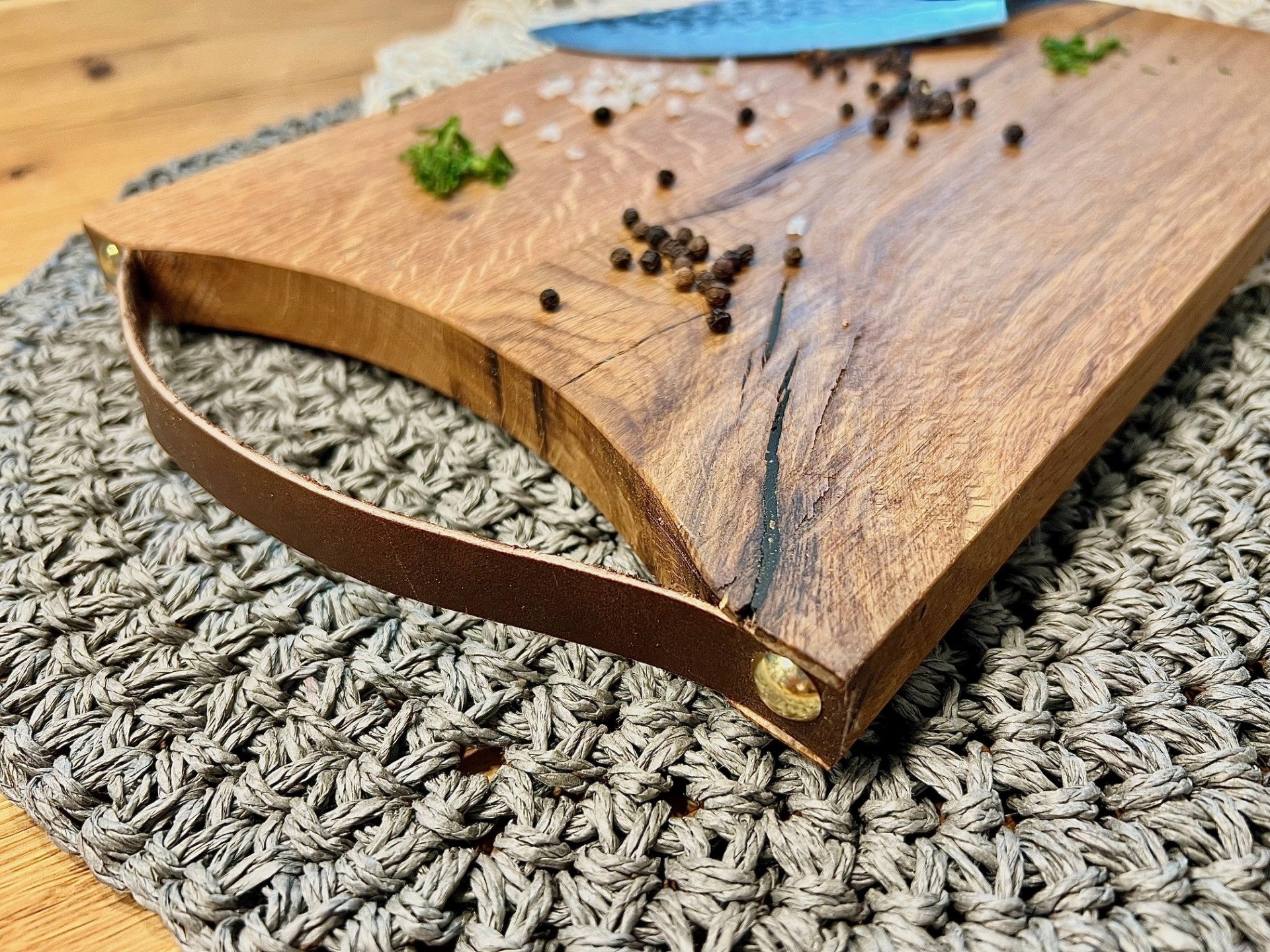 Eichen-Schneidebrett mit Ledergriff – Stilvoll und Funktional
