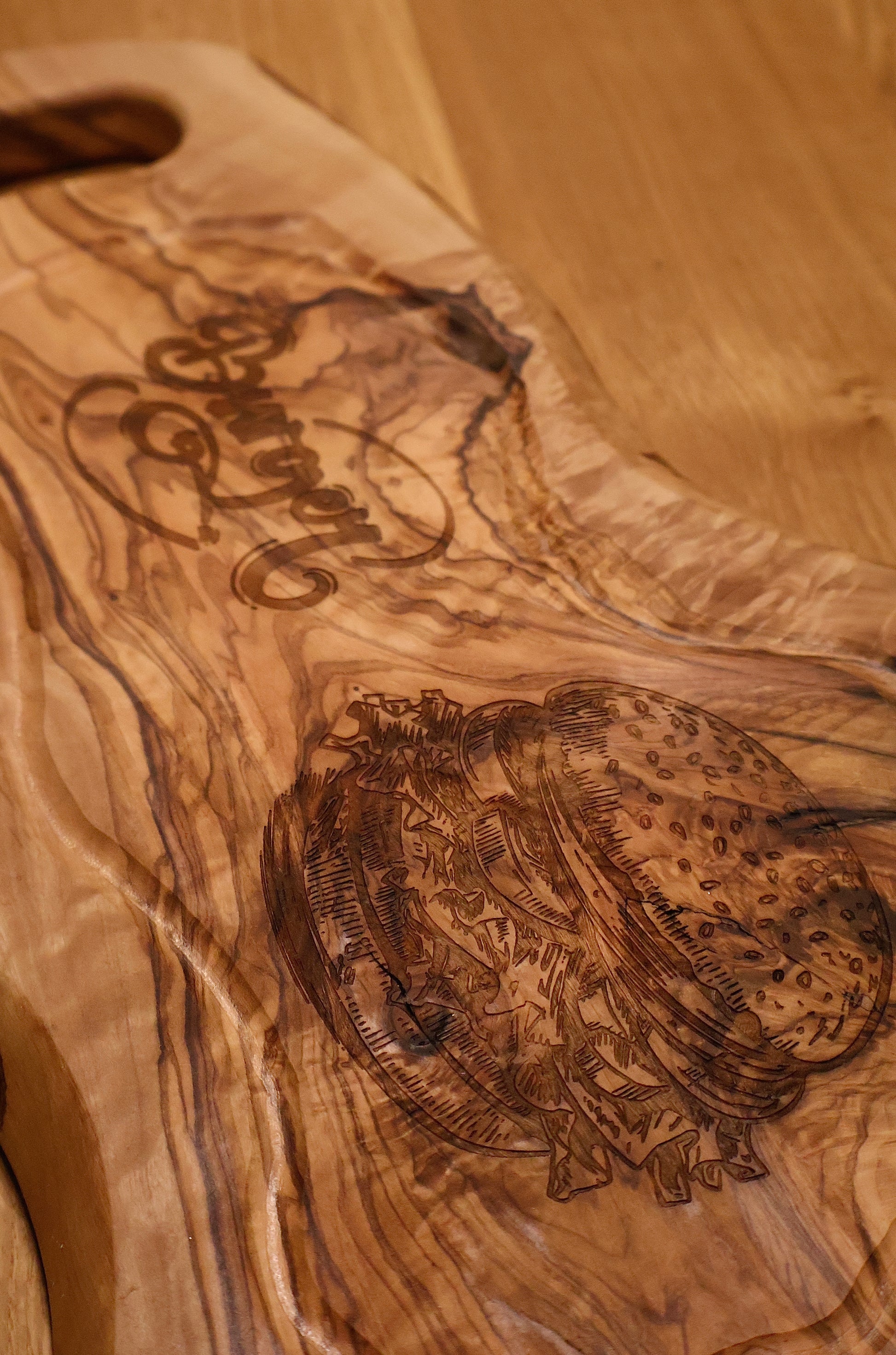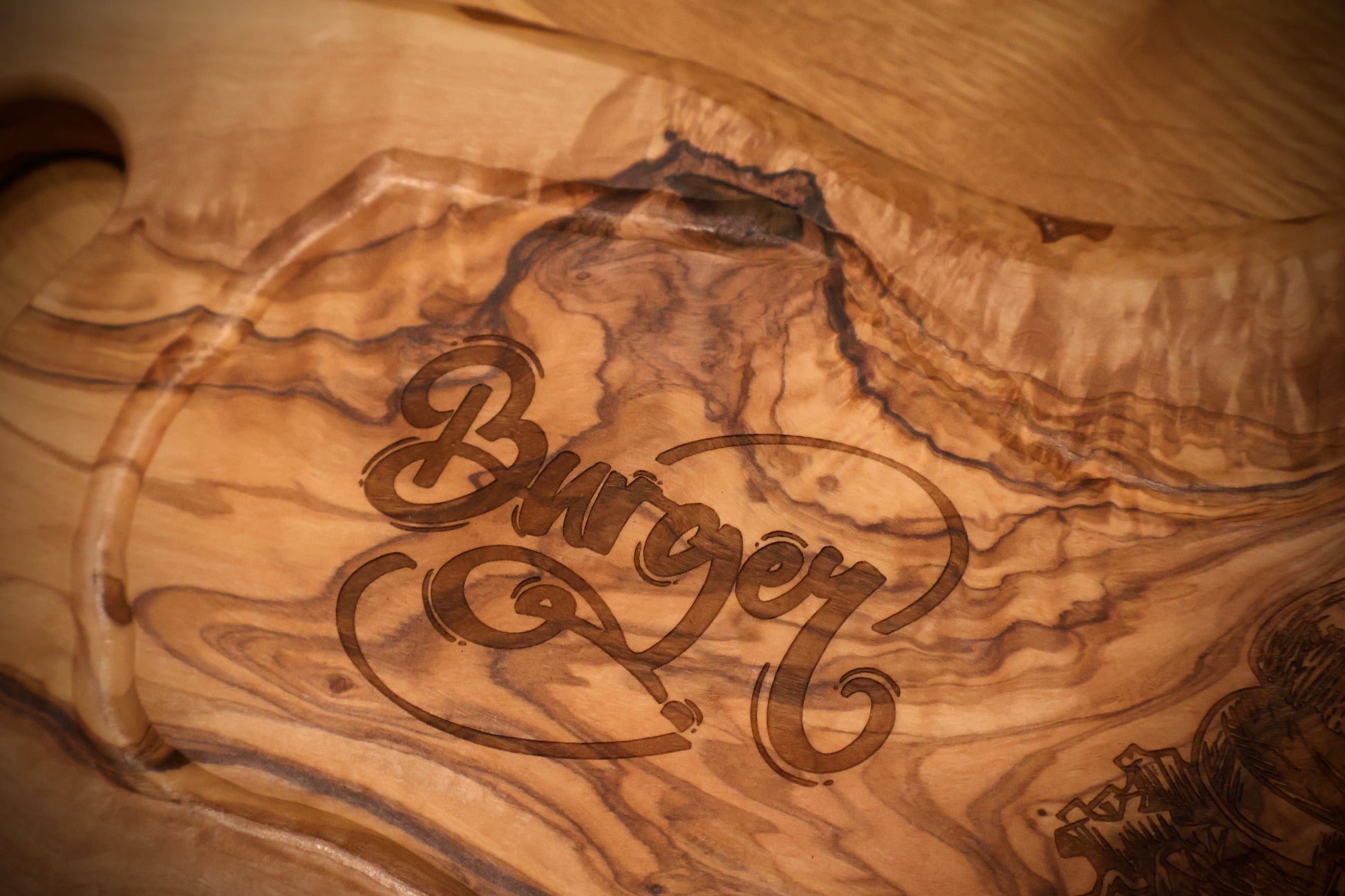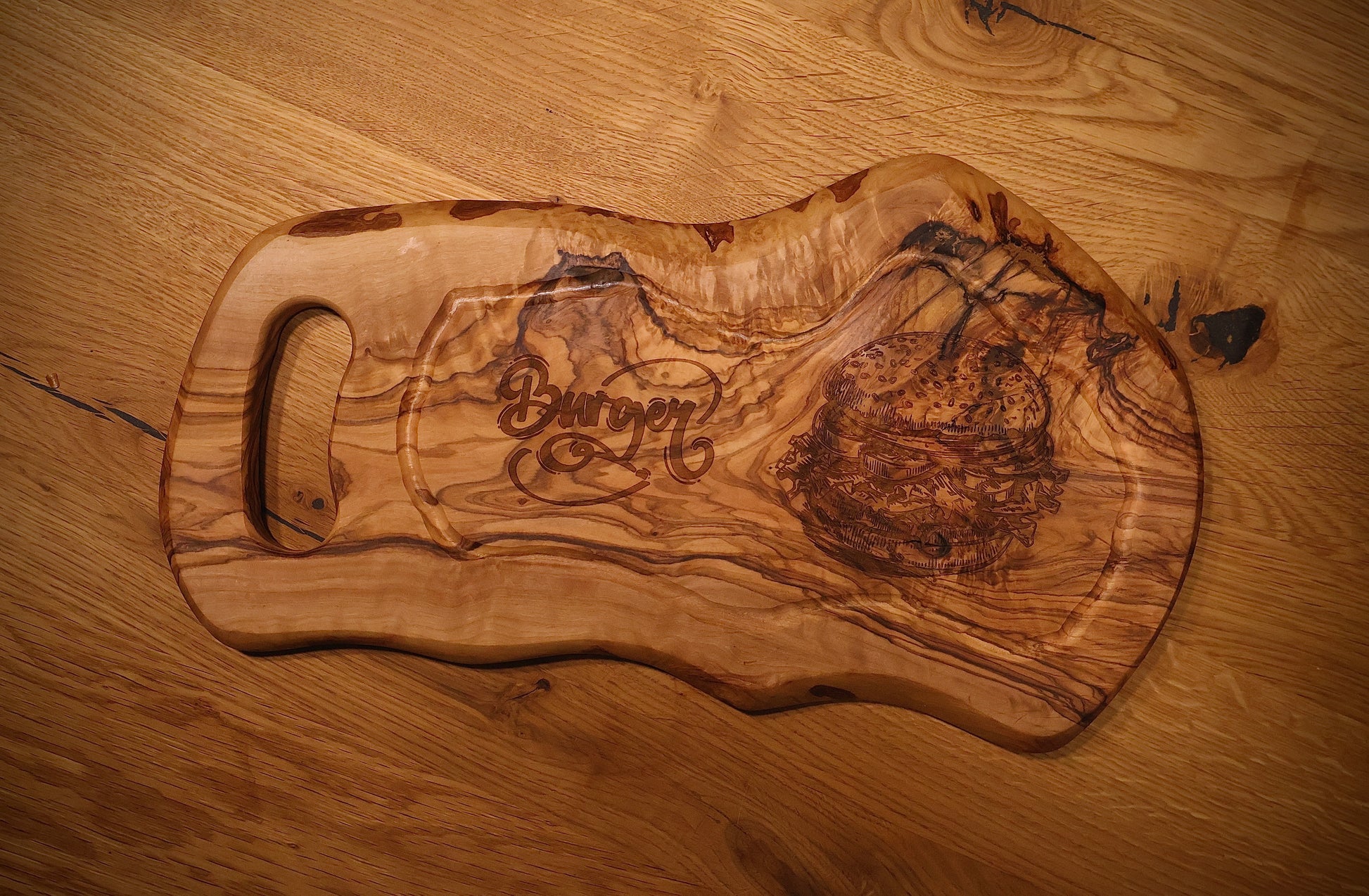 Dieses handgefertigte Burger-Platte aus edlem Olivenholz ist der perfekte Begleiter für deine Küche oder den Grillabend. Mit seiner charakteristischen Maserung und der natürlichen, warmen Farbe bringt es mediterranes Flair direkt zu dir nach Hause.