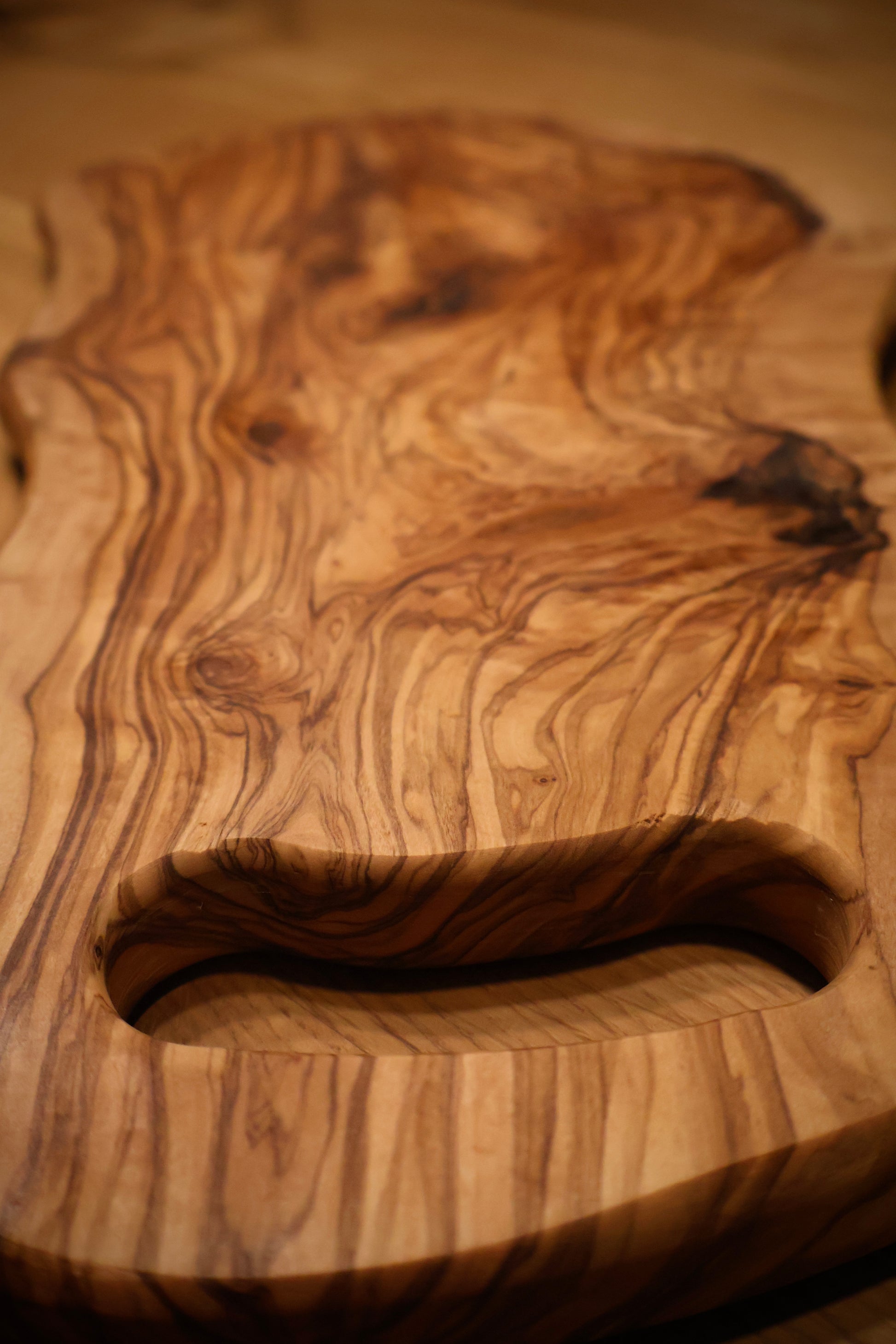 Die praktische Saftrille fängt Fleischsäfte oder Flüssigkeiten zuverlässig auf- ideal beim Schneiden. Der ergonomische Griff sorgt für eine einfache Handhabung und sicheren Halt. Dank der hohen Dichte des Olivenholzes ist das Brett besonders robust, langlebig und antibakteriell.