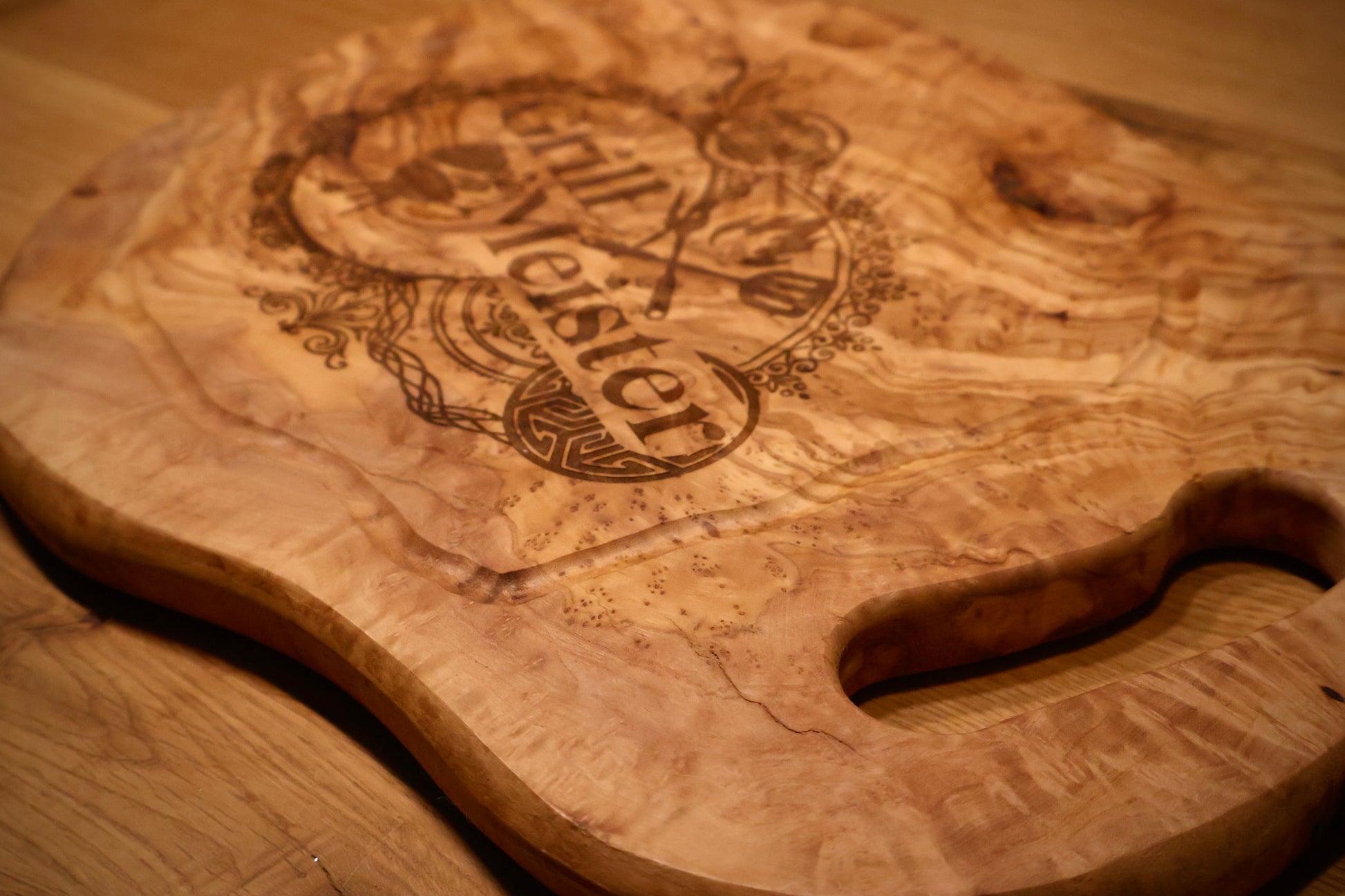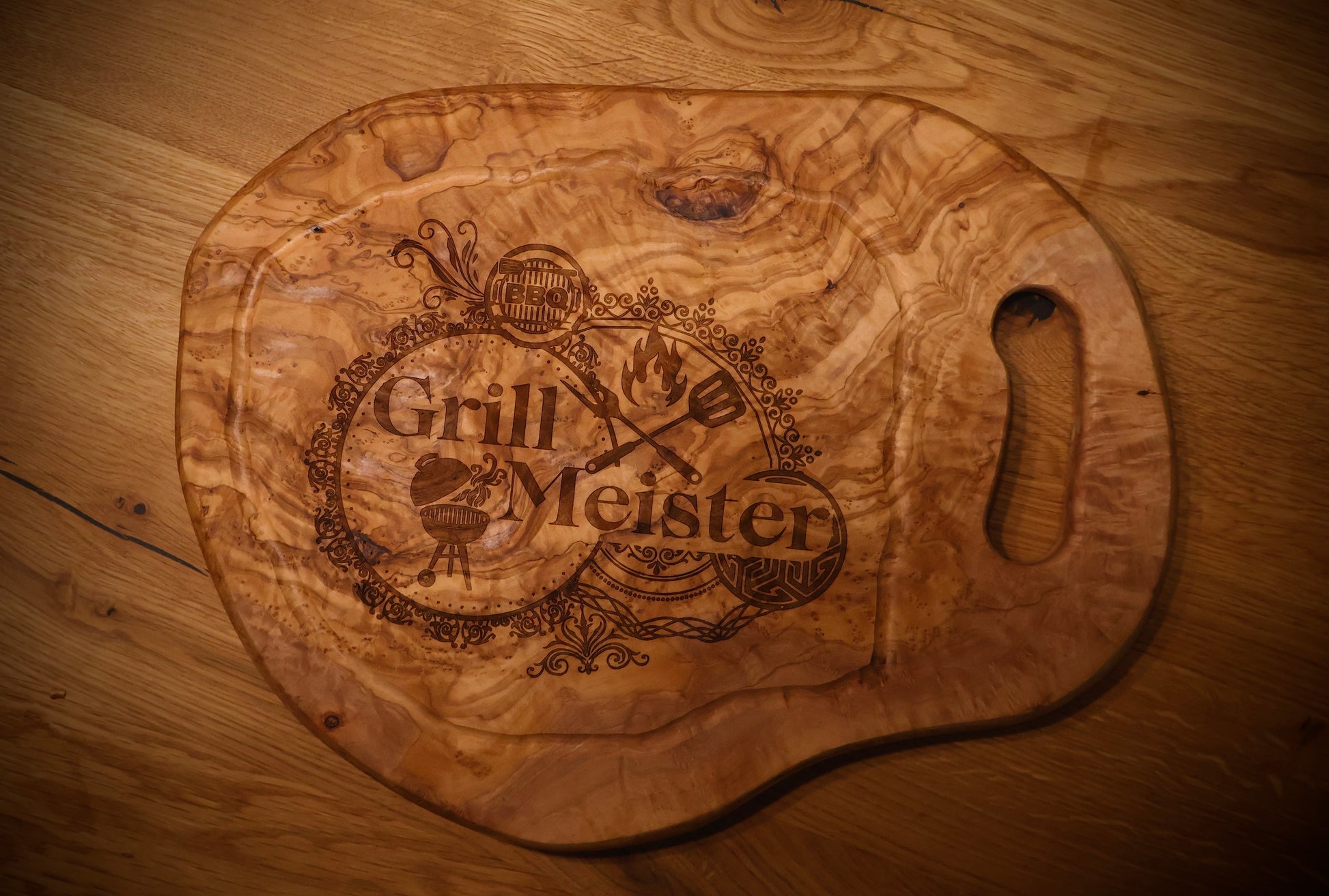 Mach dein BBQ zum echten Highlight! Unser edles Schneidebrett aus massivem Olivenholz ist das perfekte Accessoire für jeden Grillfan. Mit seiner einzigartigen Maserung und der detailreichen Gravur bringt es rustikalen Charme und Persönlichkeit in deine Grillküche.