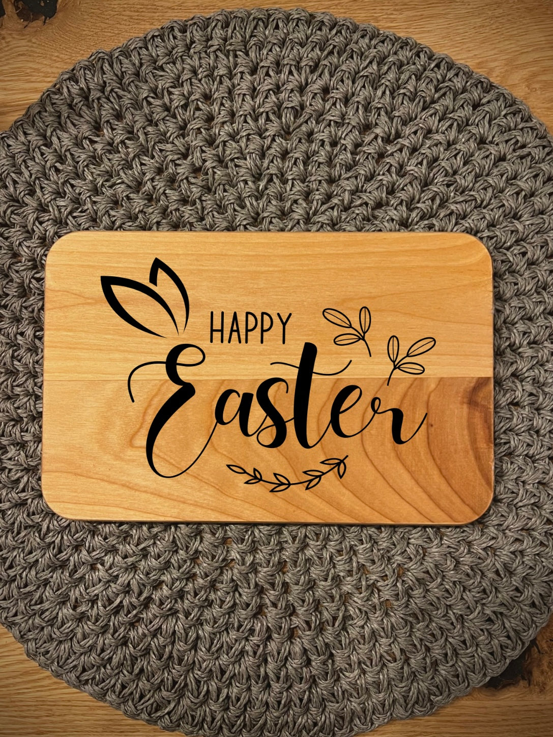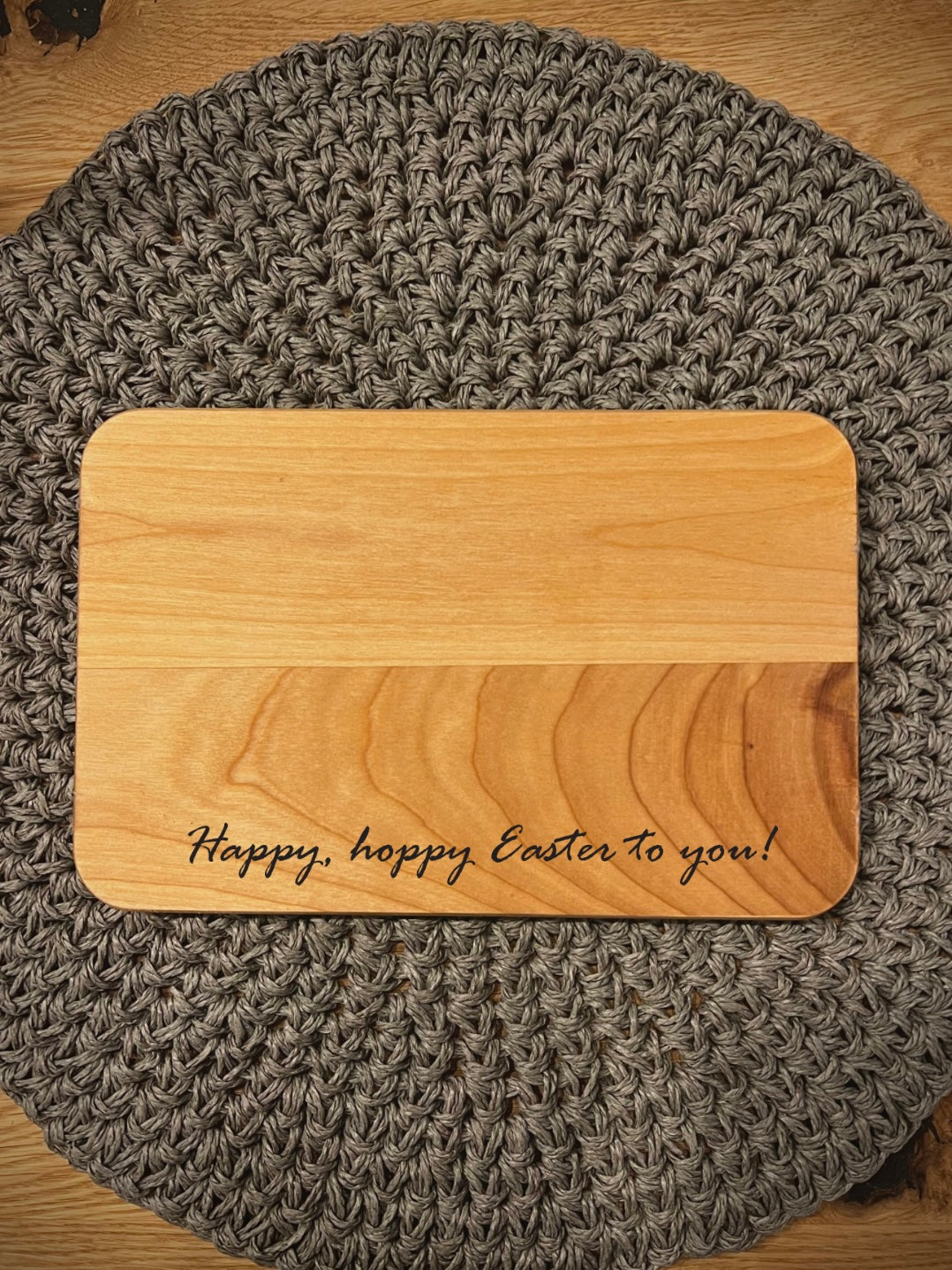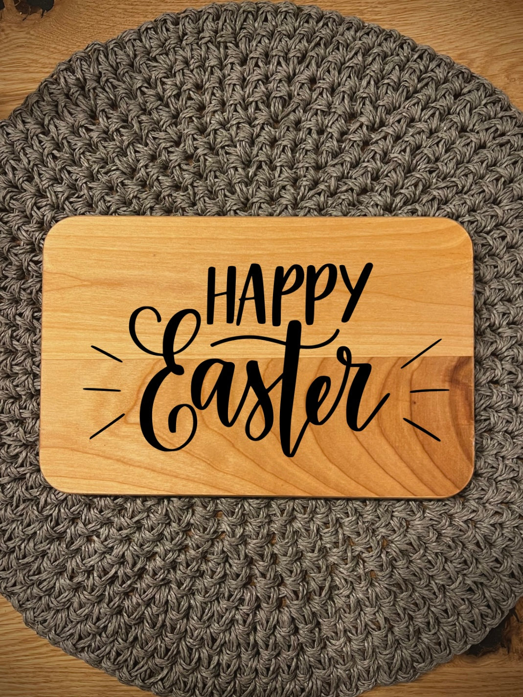 Frühstücksbrettchen aus Buchenholz mit Ostermotiv – rustikal und festlich