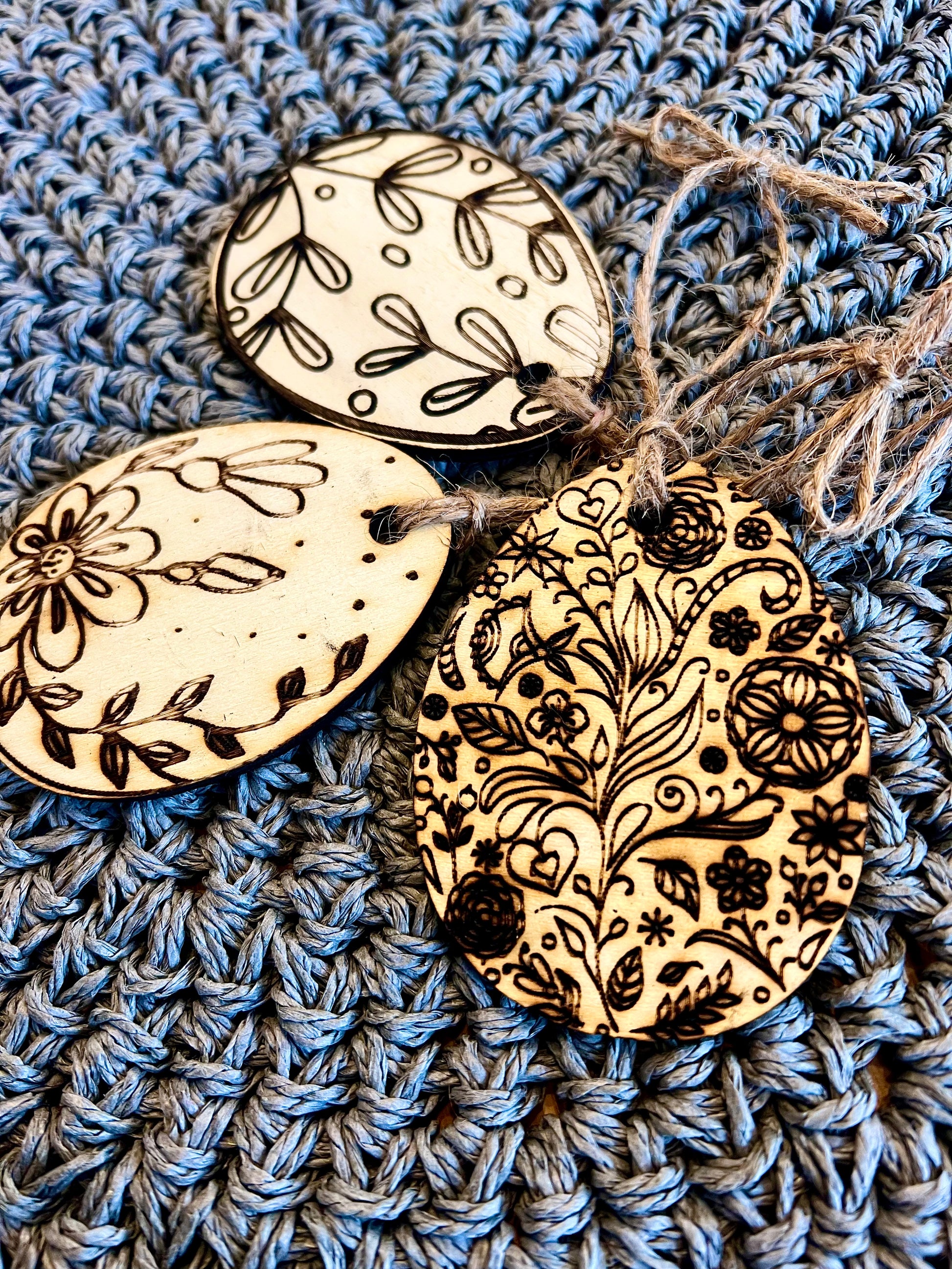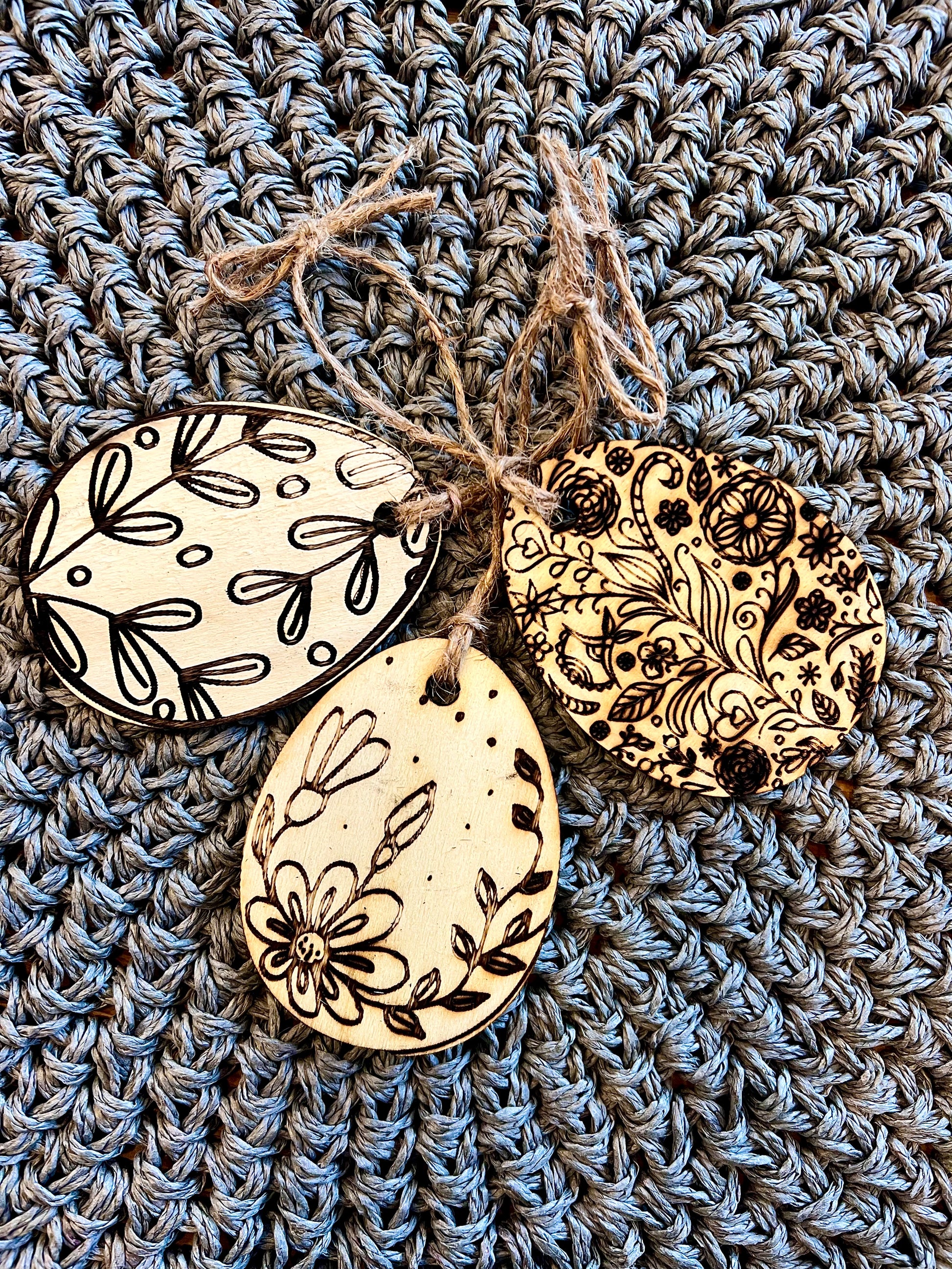 • Dreier-Set – enthält drei verschiedene Muster von Holzausschnitten in Ostereierform
