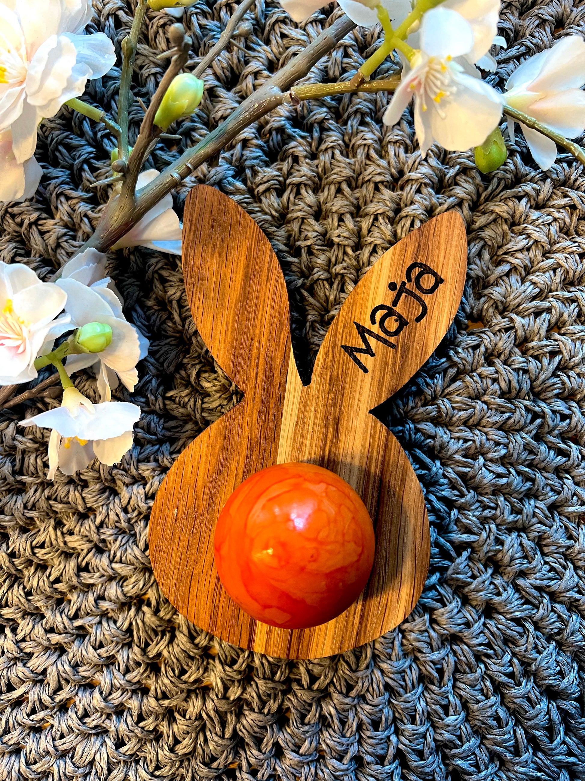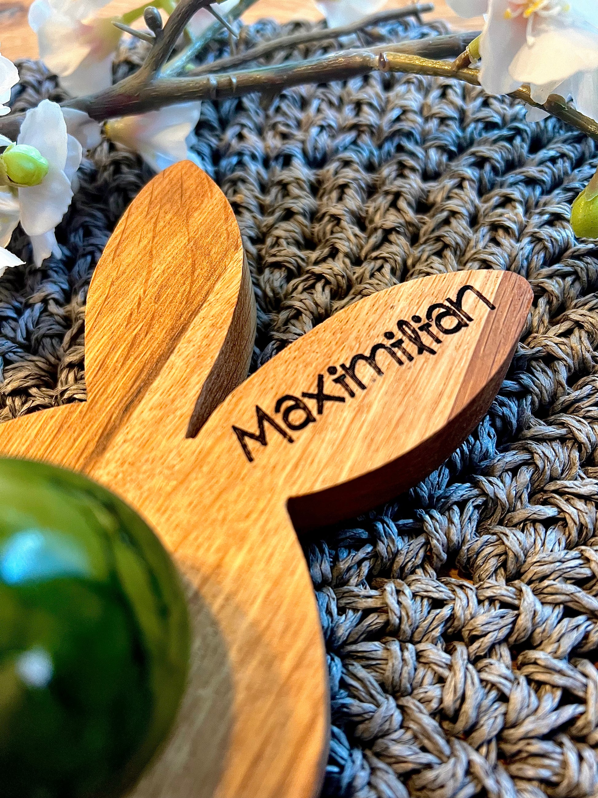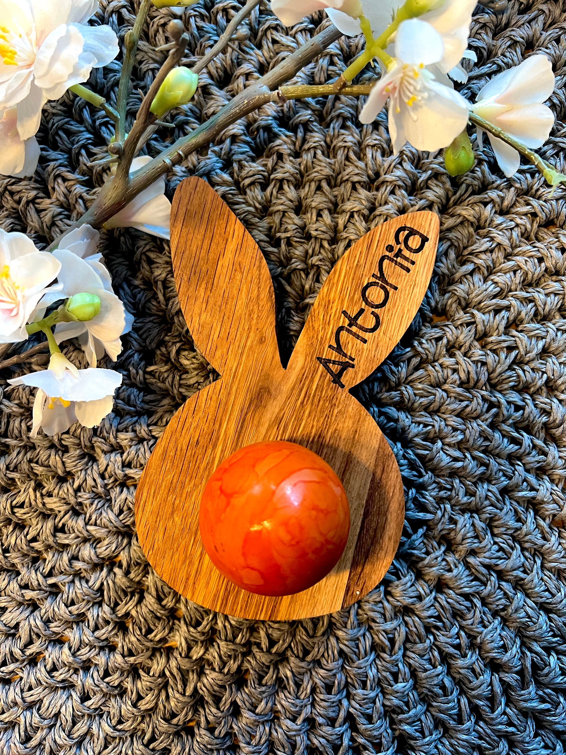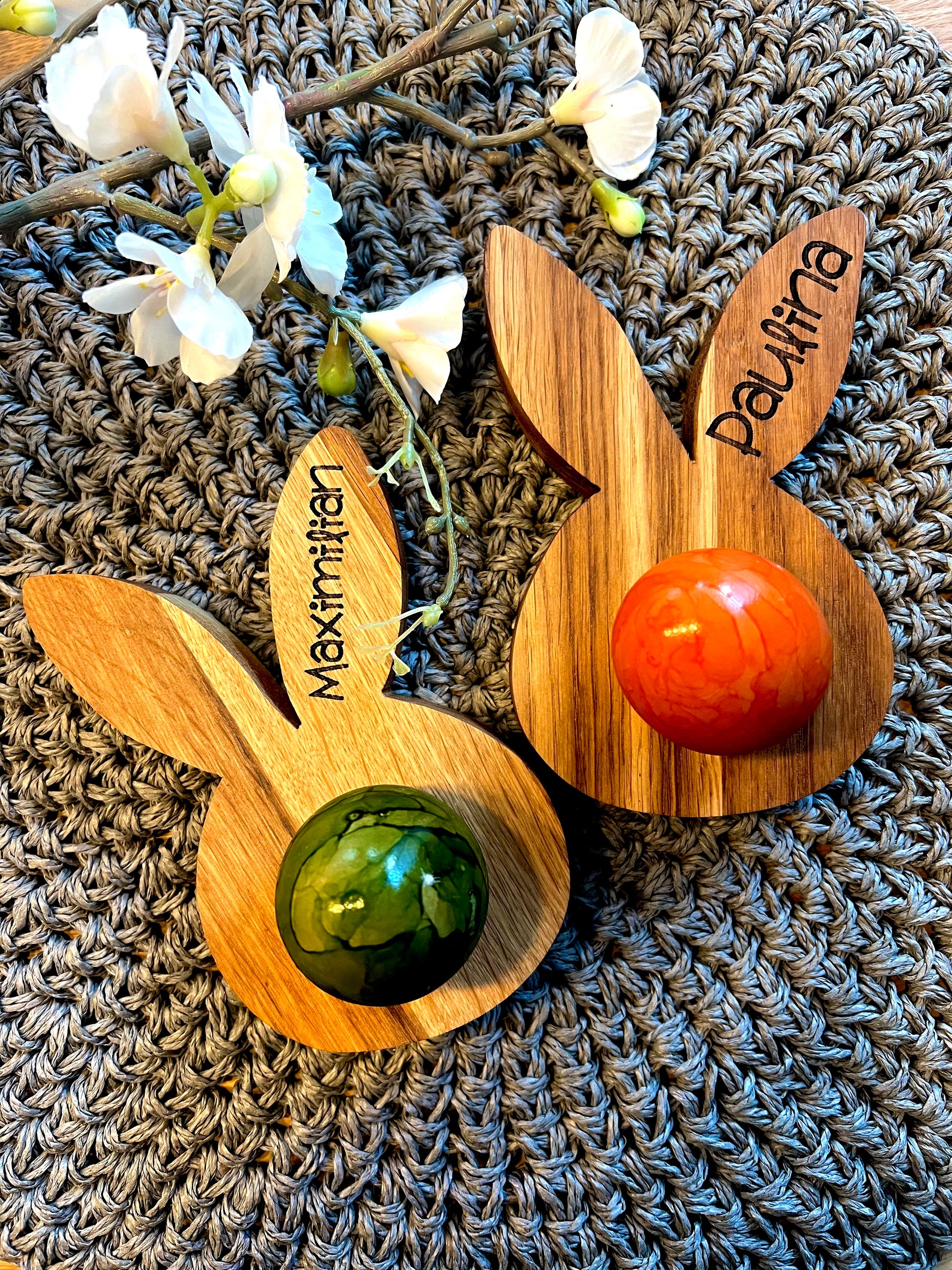 Verleihen Sie Ihrem Frühstückstisch einen Hauch von Charme mit unseren handgefertigten Eichenholz-Eierbechern! Diese stilvollen Eierbecher sind nicht nur praktisch, sondern auch eine bezaubernde Dekoration für Ihre Ostertafel. Das niedliche Osterhasen-Design sorgt für eine festliche Atmosphäre, während die Möglichkeit zur Personalisierung mit Ihrem Wunschnamen das perfekte Geschenk für Familie oder Freunde macht.